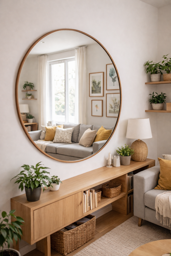 1️⃣ Use Espelhos para Ampliar a Sala Pequena